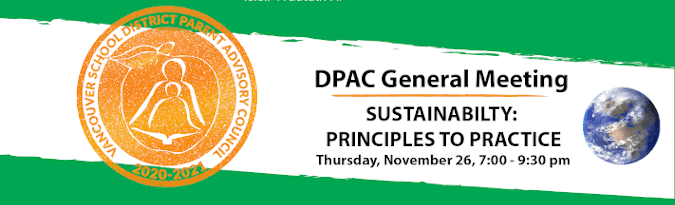 Join an engaging and informative evening with your DPAC community for part two of the sustainability education series called Sustainability: Principles to Practice this coming Thursday, November 26, 2020 at 7:00 pm. You will take away the latest information about the Vancouver Plan for greening our city, plus the latest developments and next planning stages.
