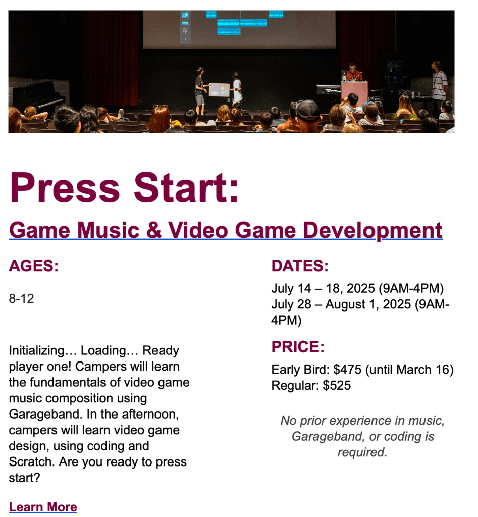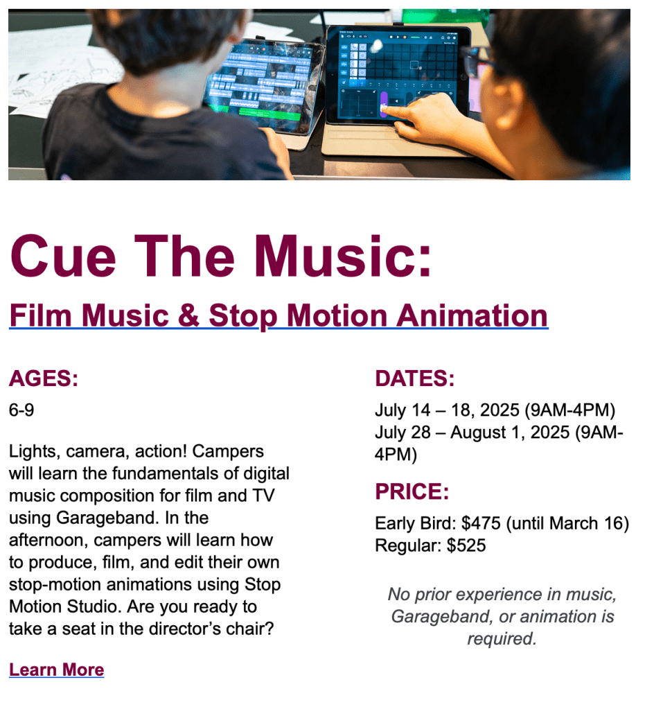 Join us for our Summer Camps at the Chan Centre, where children explore music through digital media. Through hands-on projects, campers will have the chance to create their own compositions and exciting multimedia content. With a focus on creativity, imagination, and teamwork, our camps provide a fun space for children to learn and express themselves.