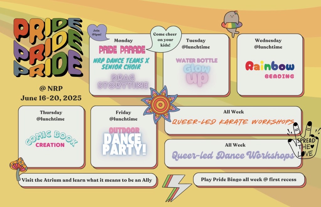 June is Pride Month and we’re celebrating and representing the diversity at NRP! Visit the school atrium and learn what it means to be an ally to the 2SLGBTQ+ community and check out our curated selection of pride-themed books. Pride month is a time to celebrate the diversity and resilience of 2SLGBTQ+ students, families, and educators, and to renew our commitment to creating safe, inclusive learning environments at NRP. This is not just of importance in June but each and every day.