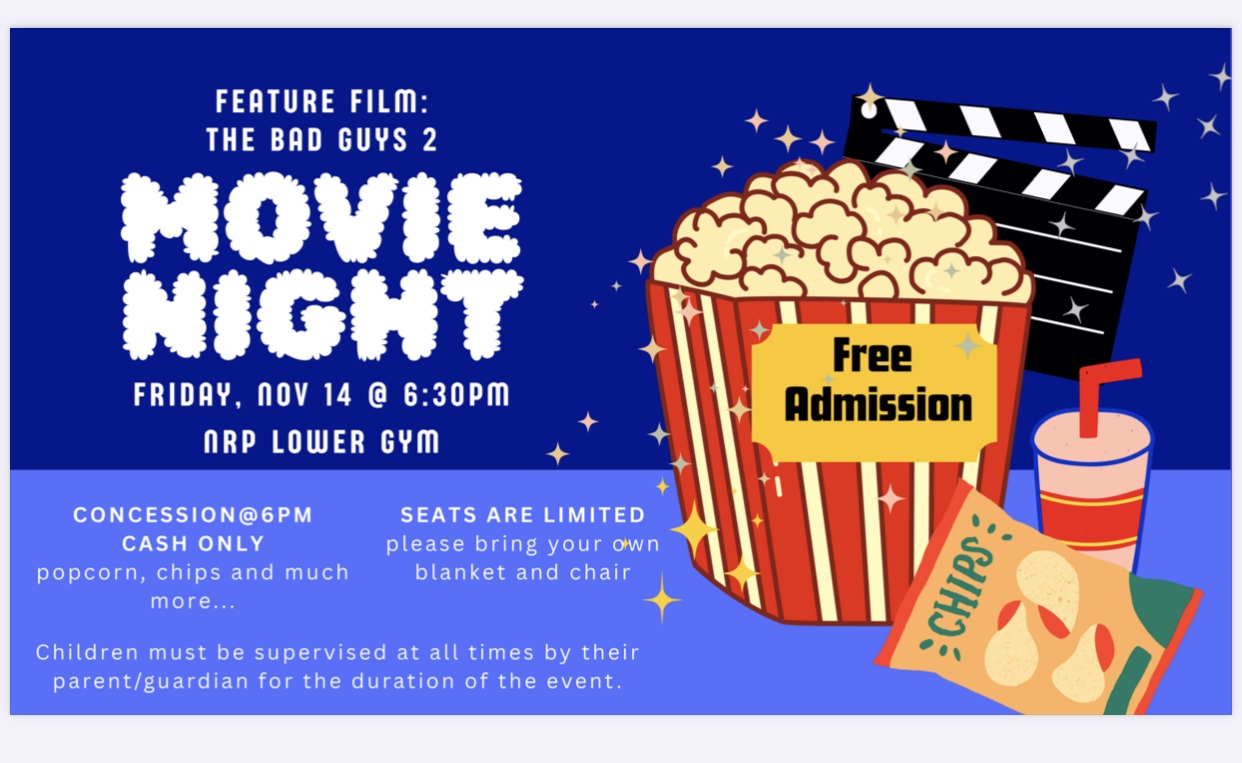 We invite all NRP families to PAC’s first Family Movie Night! We’re screening the new feature film The Bad Guys 2.