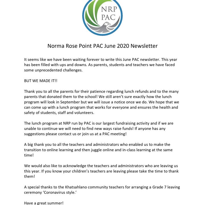 Walk n’ Roll Week The Walk n’ Roll schedule: Monday, May 28 – Thursday, May 31 8:30 am Wesbrook Village (Menchie’s) 8:30 am Old Barn Community Centre 8:45 am Acadia Park Commonsblock Friday, June 1 (Car Free Day) 8:00 am Wesbrook Village (Menchie’s) 8:00 am Old Barn Community Centre 8:15 am Acadia Park Commonsblock Car Free Morning: On June 1, between 8:00 and 10:00 AM, Ortona Road will be closed for vehicular access. The Walking School Bus will leave early for kids to participate fun activities and games, check out the fire truck and meet a RCMP officer. See road closure notification for alternative drop-off points. Staff … Continue reading Walk n’ Roll Week/Staff Appreciation Lunch/June Newsletter
